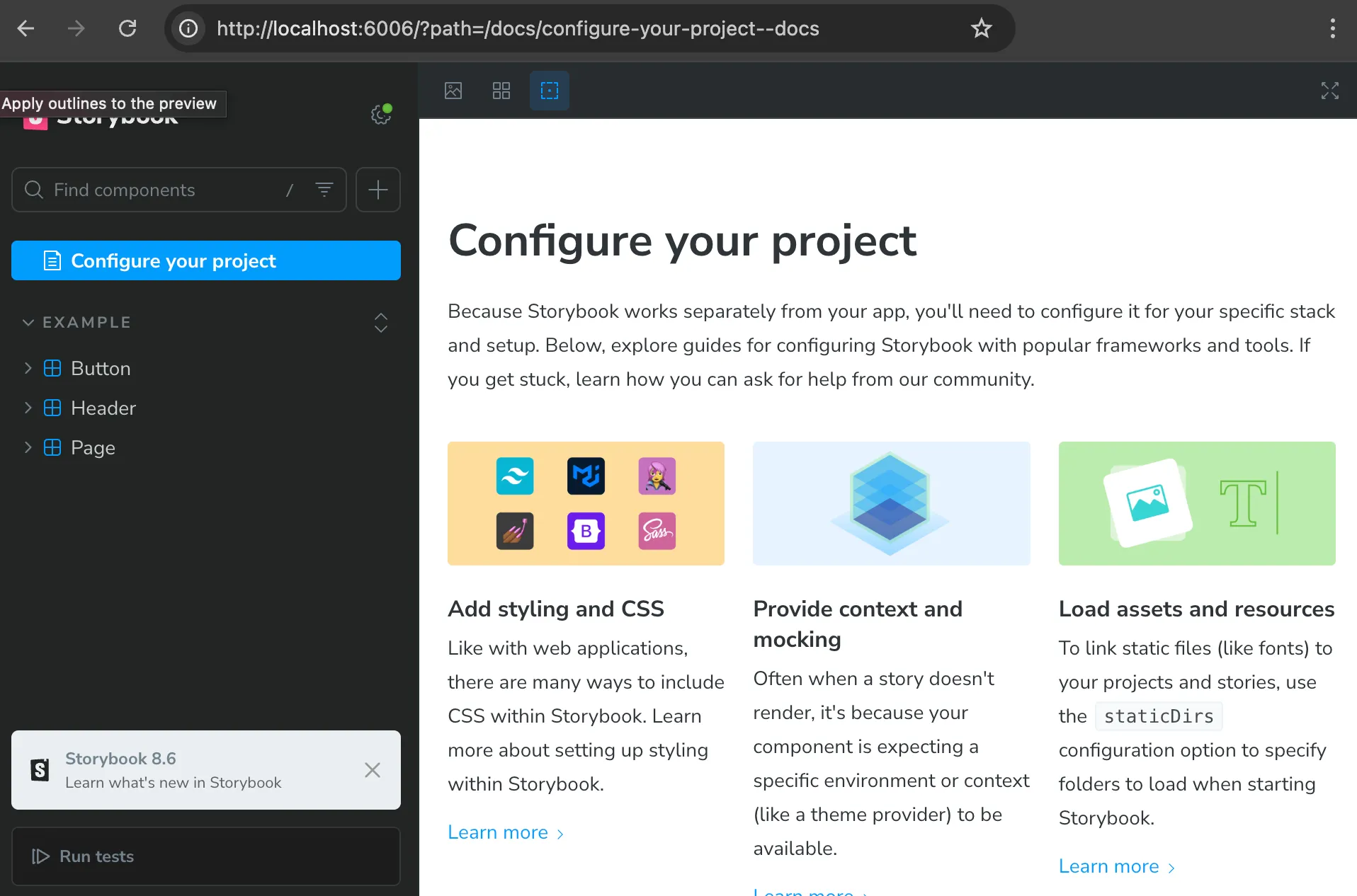 It should automatically open our browser to Storybook, and if it doesn’t, we can go to