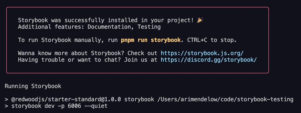 Section titled “Installing Storybook”Because the RedwoodSDK is based on React and Vite, we can work through the “React & Vite” documentation: